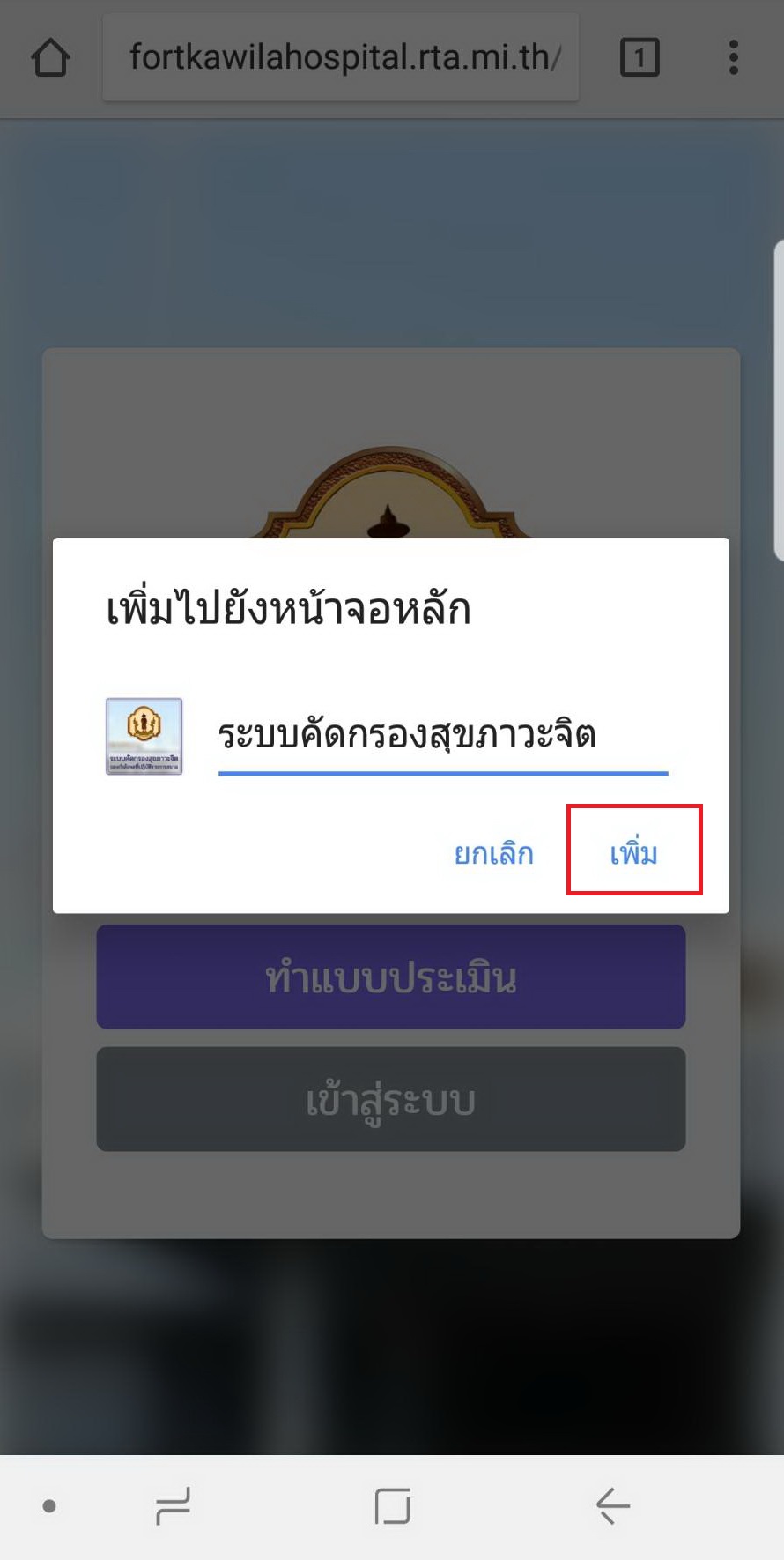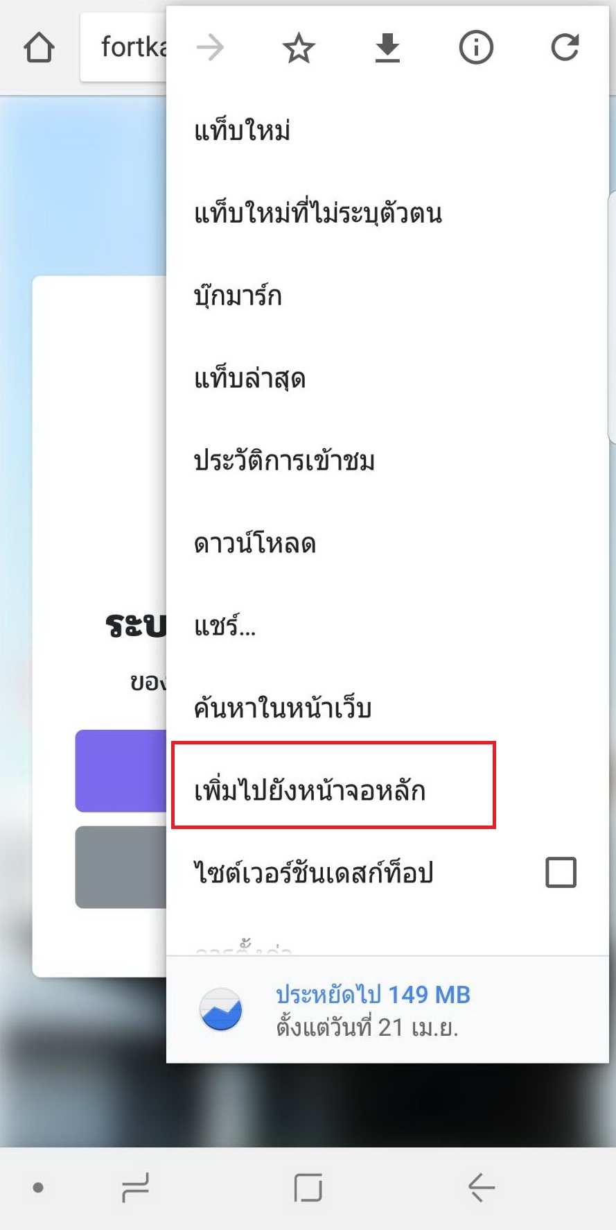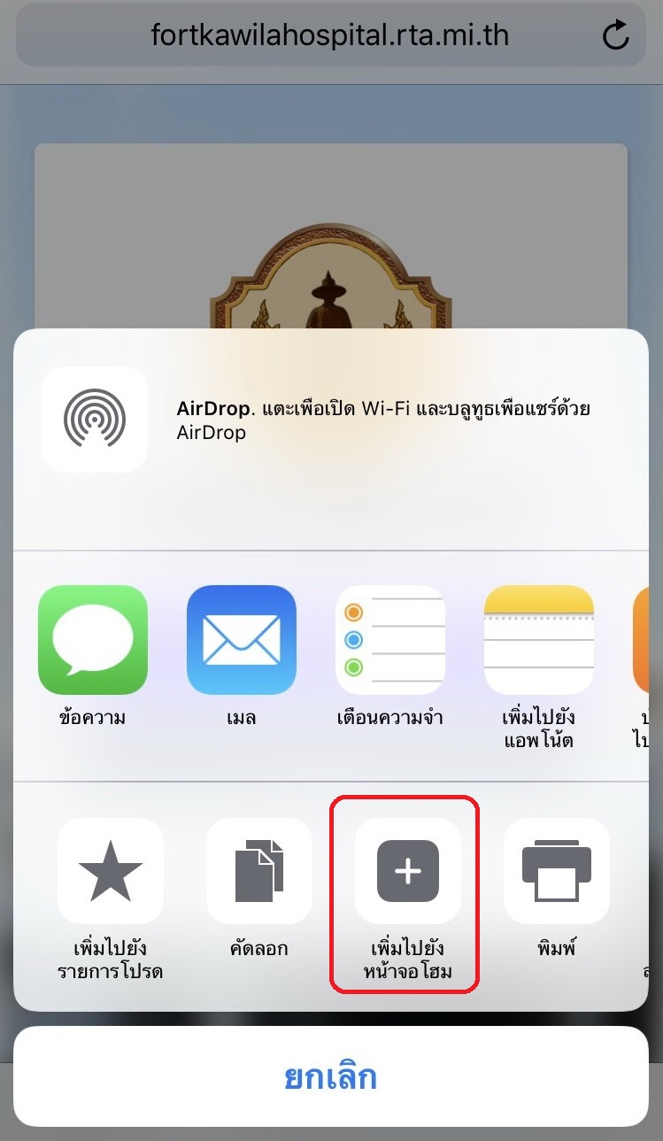 3. เลือก เพิ่มไปยังหน้าจอโฮม