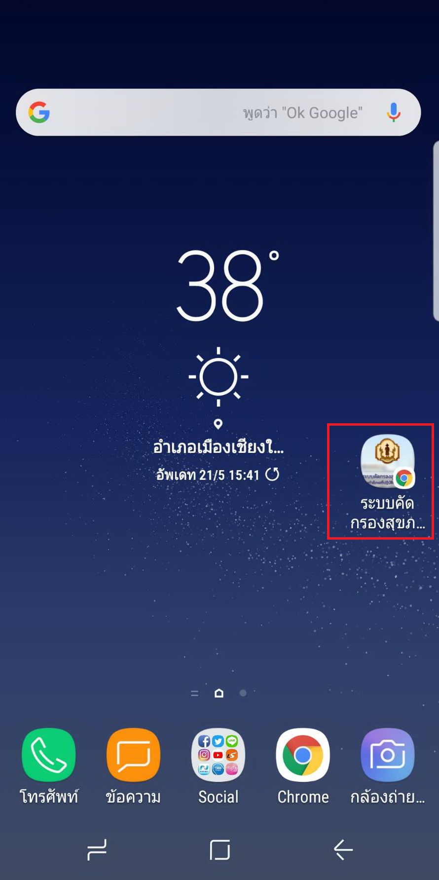 6. ปิด Chrome แล้วเข้าหน้าจอหลักมือถือจะพบว่ามีรูปของระบบcovid19หน้าจอมือถือของท่าน